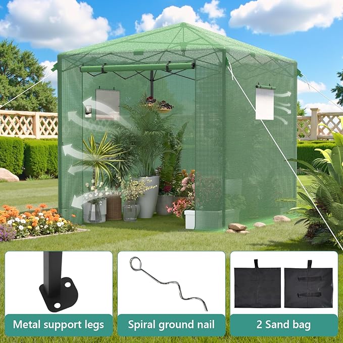 Pop Up Greenhouse 8x6FT, Pop Up Green House for Outdoors, Portable Greenhouses, Walk-in Greenhouses, Popup Greenhouse Kit, Easy Set Up