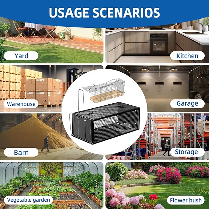 - Note: Not suitable for large squirrels and opossums, as they have a strong ability to bite through the wire or destroy the internal trigger device.