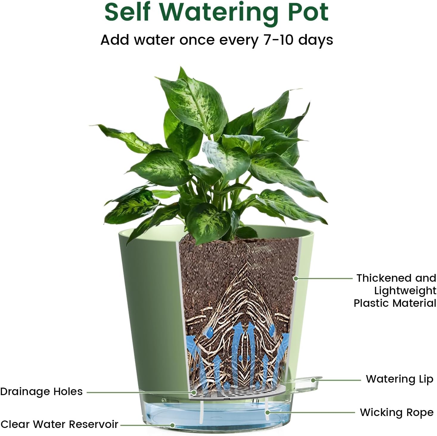 - 【Durability, Lightweight & Sturdy】These flower pots self watering are made of high-quality plastic, thick wall for solid sturdiness while lightweight, resistant to sunlight. Easy to move and rearrange, these self watering pots for indoor plants let you effortlessly create stylish plant displays in your office or home