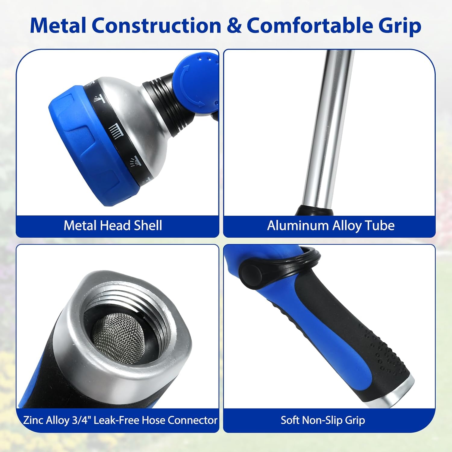 Watering Wand for Garden Hose, 30 Inch, 10 Spray Patterns, Thumb Control Garden Hose Nozzle, Adjustable Water Sprayer with Pivoting Head, Ideal for Hanging Baskets, Plants, and Shrubs, Blue