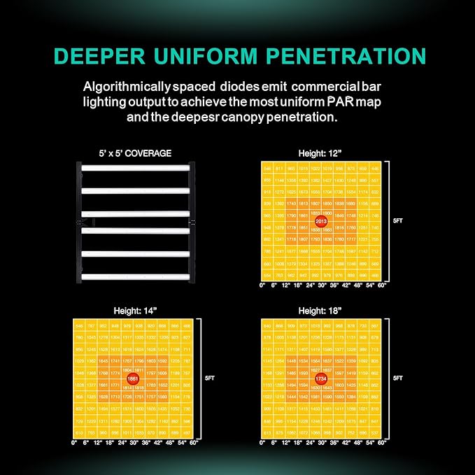 - AMAZING HEAT DISSIPATION & ADVANCED FOLDING - Light bar style and aluminum material can contribute to better airflow and great heat dissipation, ensure longer lifetime and lower energy bill. This plant growing light is foldable, it can be folded up to 180°,easy to be carried and installed. With 6 led grow light bars, each bar is covered with high-grade glue, easy to clean.