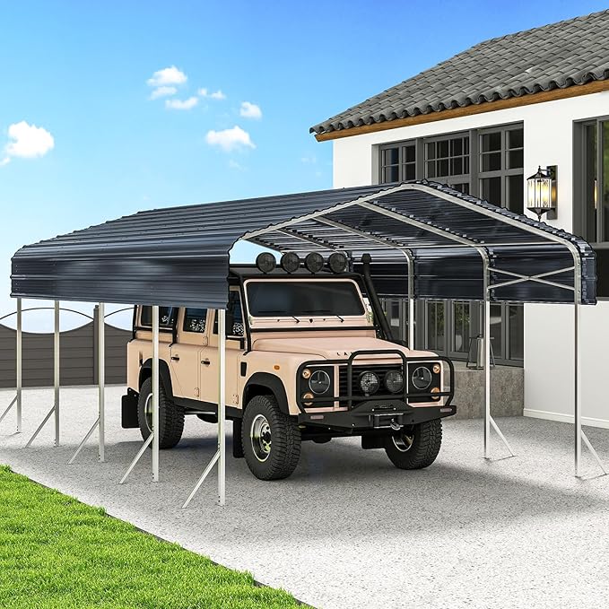 - Year-Round Protection – The 2" x 2" reinforced frame and 27-gauge metal roof provide reliable shelter, keeping your vehicles and equipment safe from rain, snow, wind, and sun
