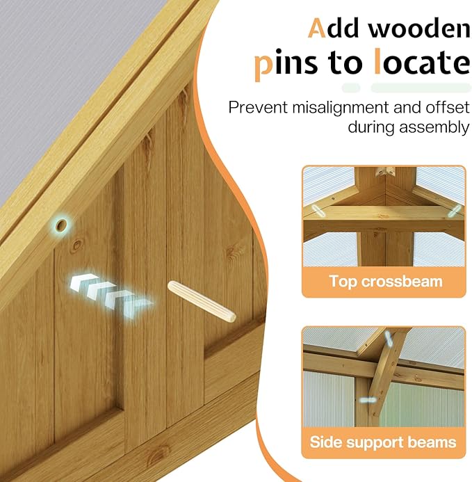 - Spacious Interior: Greenhouse wood with a 5.38ft wall height and 7.45ft peak height, this greenhouse provides ample space to move around, ideal for gardening, relaxation, and more