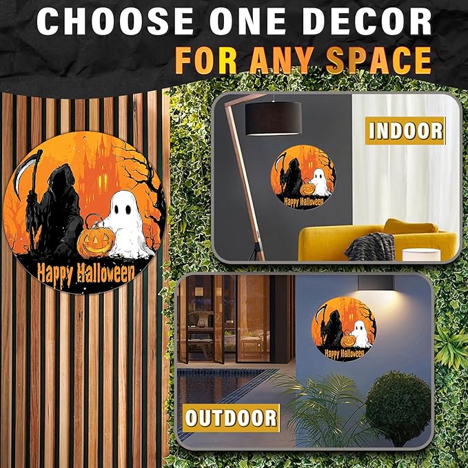 PEACHGARDEN Happy Halloween Round Metal Tin Sign Gothic Decor Vintage Wall Art Retro 8x8inch