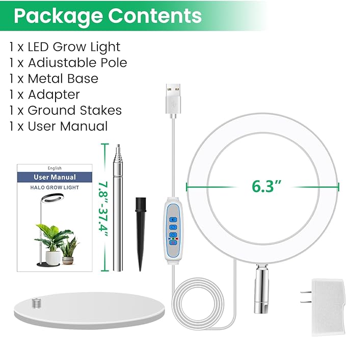 - Two Installation Method: This plant light can be inserted into the soil or placed on the table. 6.3in metal base and non-slip pads to ensure the stability of the table, and is equipped with 9.8 to 37.4in adjustable pole, or inserted ABS sharp to the soil.