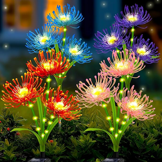 - [Thoughtful Garden Gift]Solar lights use spider lily simulation design.The spider lily symbolizes resilience,eternity,and rare beauty,representing enduring romance and timeless affection.It's a tribute to maternal strength and an expression of everlasting love,making it the most thoughtful gift for women,mothers,grandmothers,and gardening enthusiasts on Mother's Day,birthdays,Thanksgiving,and Christmas.
