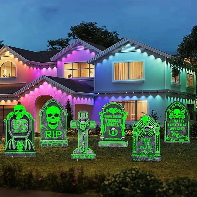 - 【Easy to Install Anywhere】Lightweight yet stable, these Halloween tombstones graveyard decor can be placed on lawns, porches, or pathways. Simply connect these Halloween tombstone decorations to the included stakes and push them into the ground for instant spooky placement. No tools or complicated assembly needed—perfect for quick outdoor Halloween yard decor setup!