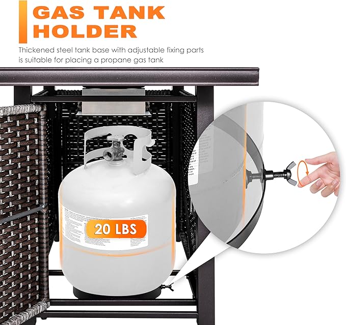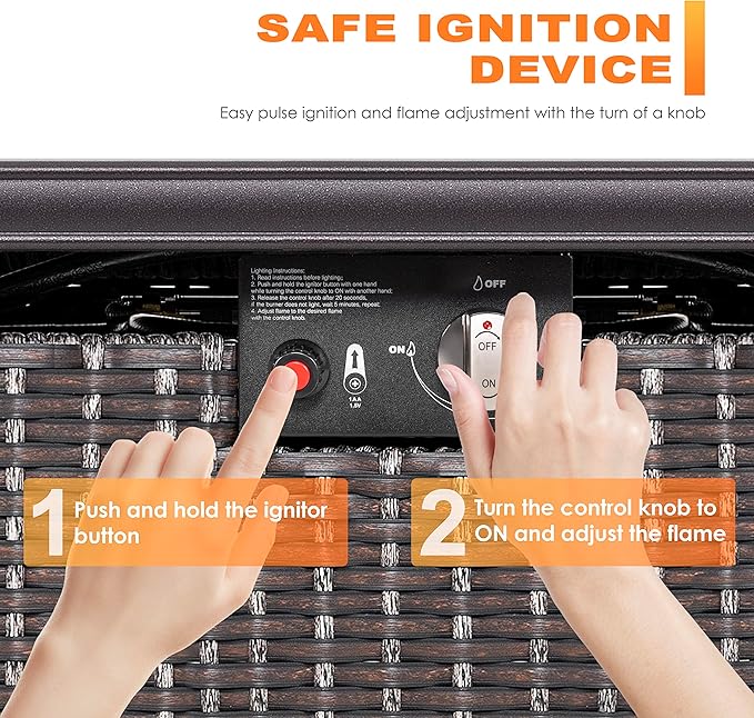 - Easy Ignition & Flame Adjustment: The electronic ignition system (AAA battery not included) allows you to light the table safely and effortlessly. The control knob is made of zinc alloy for a longer life span. Just push the button and turn the control knob to adjust the flame to the desired temperature.