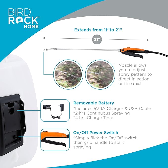 BIRDROCK HOME 4-Gallon Battery-Powered Garden Sprayer - Adjustable Stainless Steel Wand, Lightweight, Rechargeable 12V Lithium Battery, Ideal for Lawn, Garden, and Outdoor Spaces