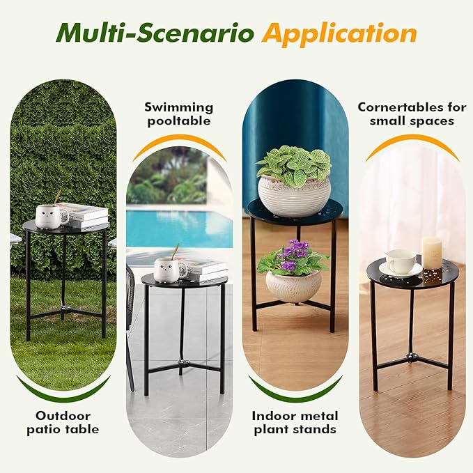 - Great Value Order: The outdoor side table gives you more options for arranging your patio or garden. Use them together or separately as an accent table set or as outdoor end tables. The metal side table is perfectly sized to fit in corners, taking up minimal space while providing a practical surface for placing items and adding a decorative touch to your home.
