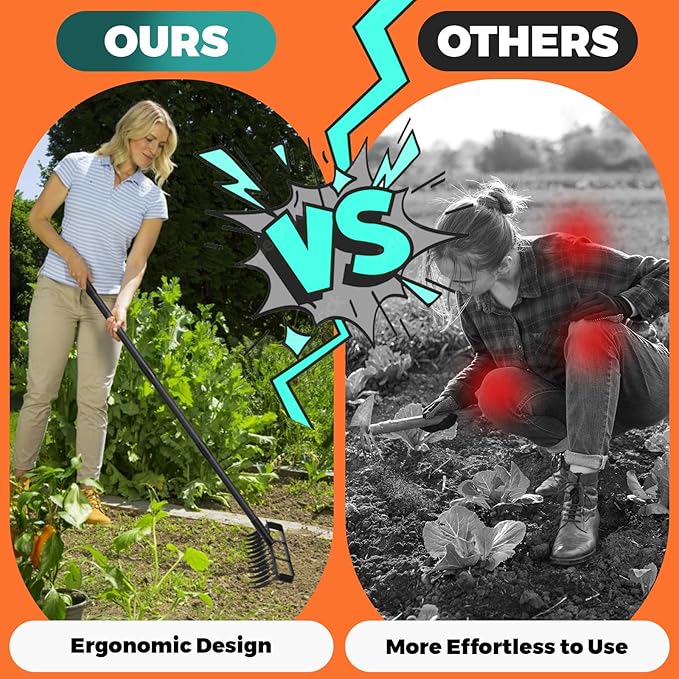 - Durable & Stable: Crafted from high-quality materials, this garden hoe for weeding is built to withstand tough use. The robust design ensures it won’t bend or break while loosening soil or removing weeds, making it a reliable weeding tool that lasts season after season.