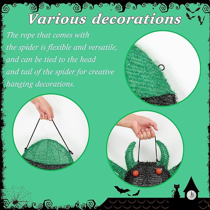 - 【EASY SET UP】With just the spider's body and eight limbs spliced together, it can be easily and appropriately posed in different poses for placing on a porch. You can arrange them into appropriate poses to suit your Halloween vibe.