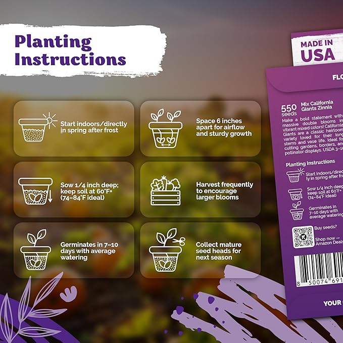 - Organic Heirloom Value: heirloom zinnia seeds for 2025 are non-GMO and moisture sealed; 1 seed packets cover 80 sq ft of color, giving budget-friendly annual flower seeds packets for every gardener.
