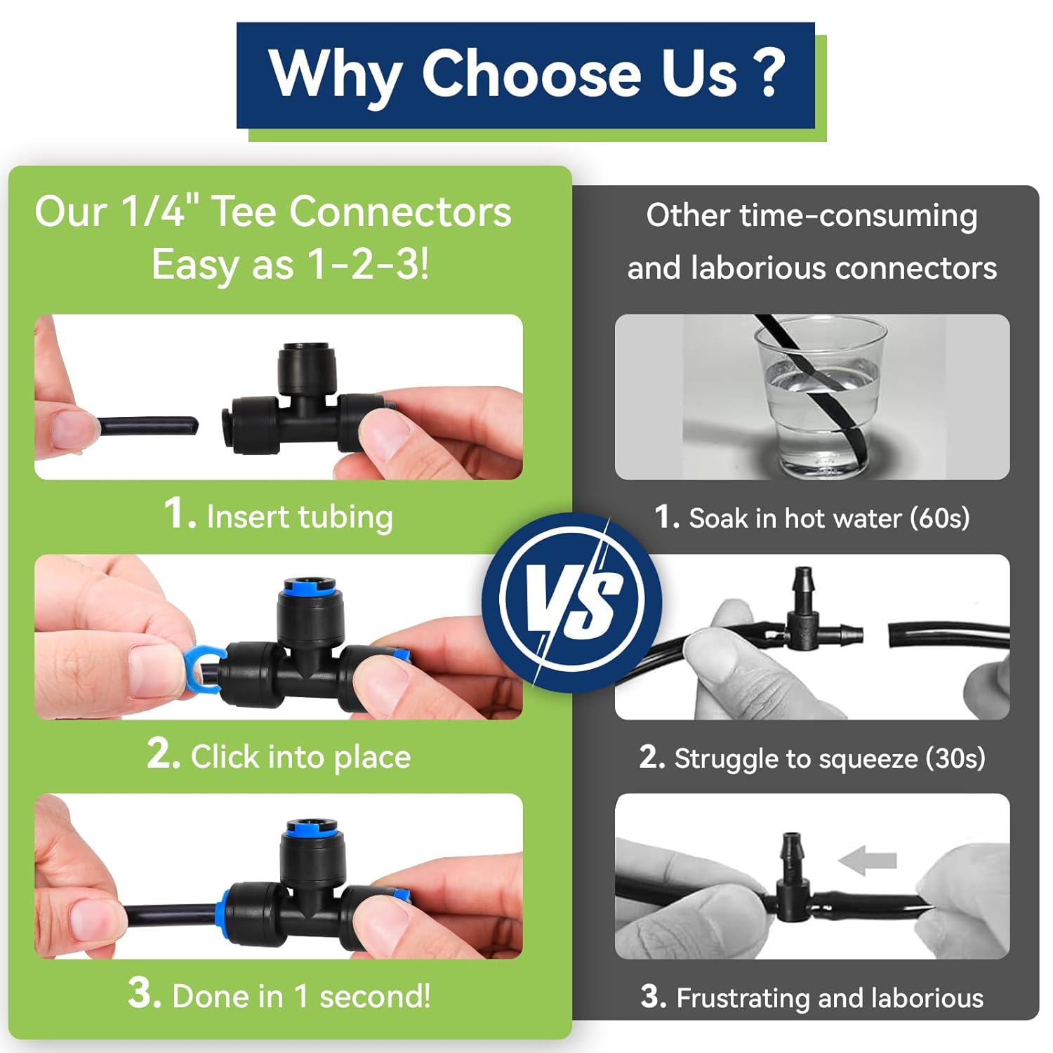 40 Pack 1/4" Drip Irrigation Tee Connectors, Quick Connect Universal Drip Irrigation Tubing Coupling Valve, Connector Locking Fitting for Sprinkler or Drip Irrigation System