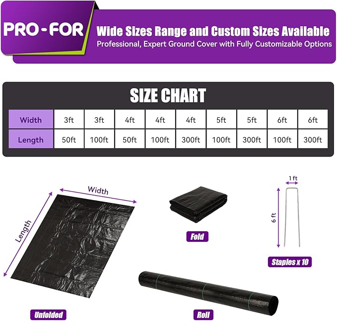 - 【PRO-FOR: Professional Total Weed Block & Erosion Control】 Heavier than standard garden fabric – protects investments season after season. Combines erosion control + soil health in one thick weed barrier fabric. Save 50+ weeding hours yearly. Backed by industrial-grade durability and 24/7 PRO-FOR support for 100% satisfaction.