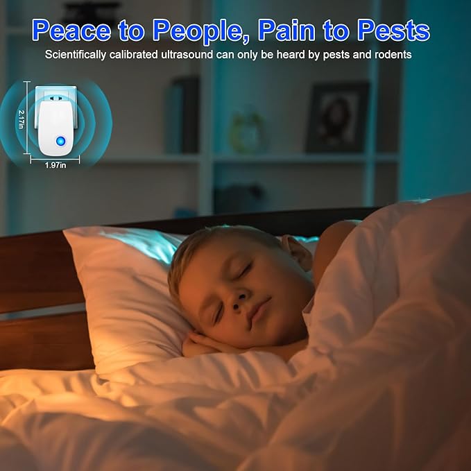 - Safe and Effective: This ultrasonic repeller is safe for humans and pets. Eliminate the need for harmful poisons, toxic chemicals, or messy traps. Enjoy effective and peaceful pest control with this plug-in solution.