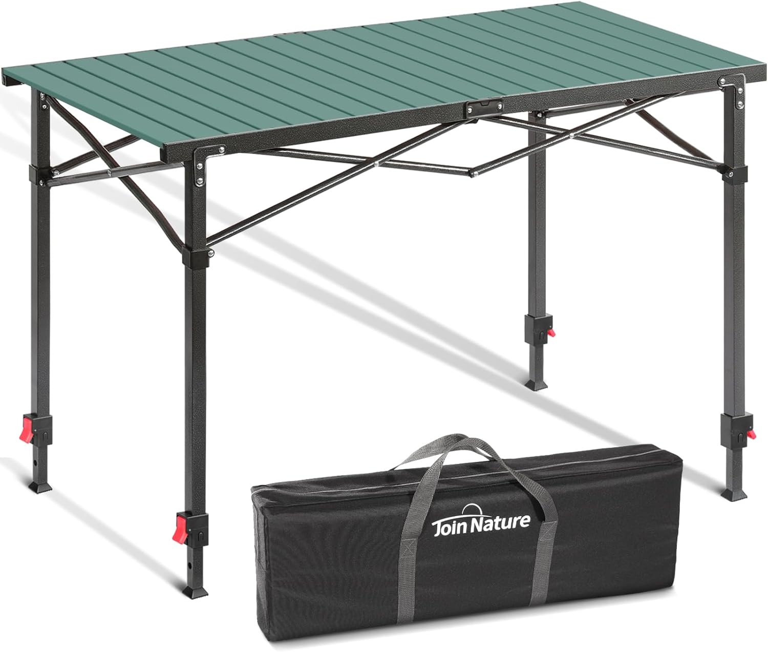 - Extremely Durable: The Join Nature adjustable camp table features a frame made of high-strength painted steel tubes combined with cross-shaped support tubes, and the tabletop is constructed from heavy-duty aluminum sheets. The high-quality materials and construction make our camping table exceptionally strong and durable, with a load-bearing capacity of up to 220 pounds—at least 30% higher than standard tables.