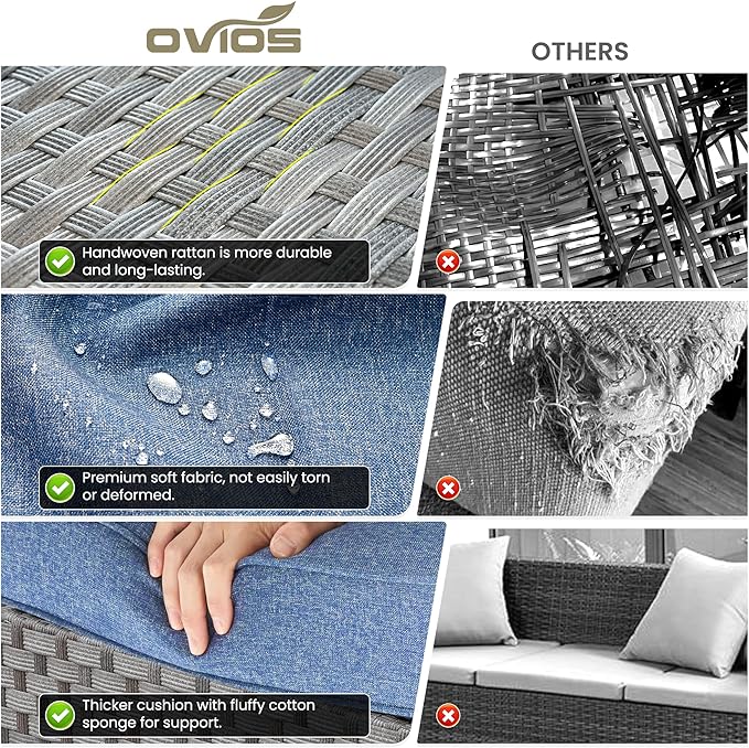 - All-weather Wicker Rattan: Our outdoor sofa sets have very durable PE wicker rattan for all-weather use and a natural texture with good coloring. The high-quality patio seating made of powder coated steel frame ensures good strength and stability