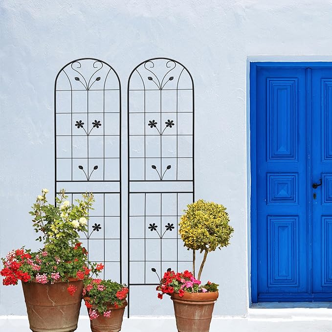 - Sturdy Metal Construction: Our 2 Pack Metal Garden Trellis is made from high-quality iron, ensuring durability and longevity. The rustproof design maintains its sleek black finish, making it an attractive addition to your outdoor space.