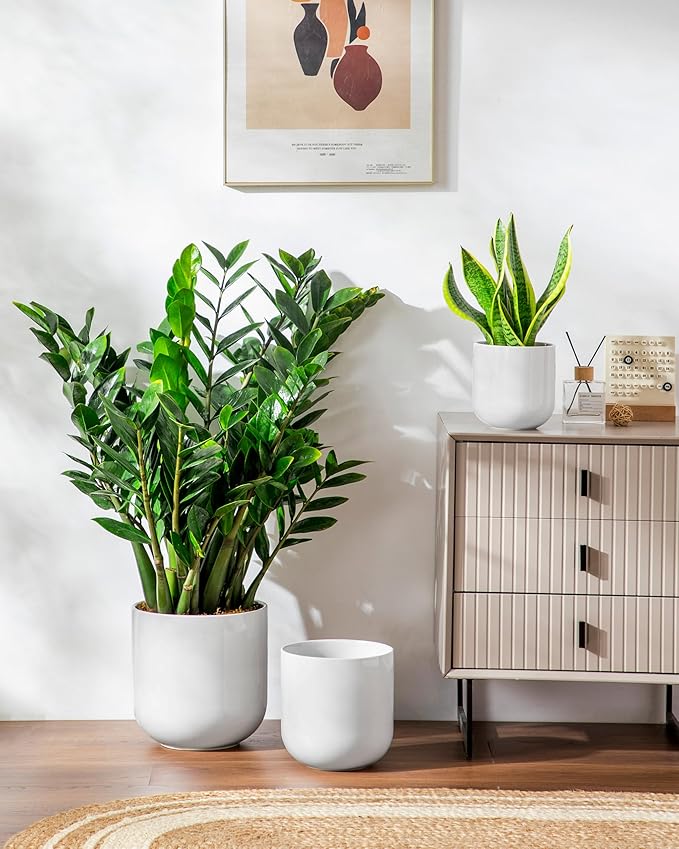 - 🏠Perfect Trio Set – Includes 3 ceramic flower pots in sizes 6", 8", and 10", perfect for accommodating medium to large indoor plants, such as ferns, snake plants, peace lilies, or decorative flowers. A stylish and practical choice for living rooms, entryways, patios, or office corners. Whether you're decorating a cozy apartment or a spacious home, these planters add vibrant life and charm to any space.