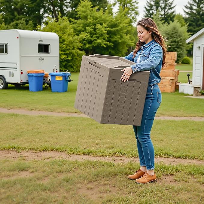 - Light & Solid: Made of a high density resin material, it is stable, waterproof and UV resistant. The net weight of this deck box is only 8.8 pounds