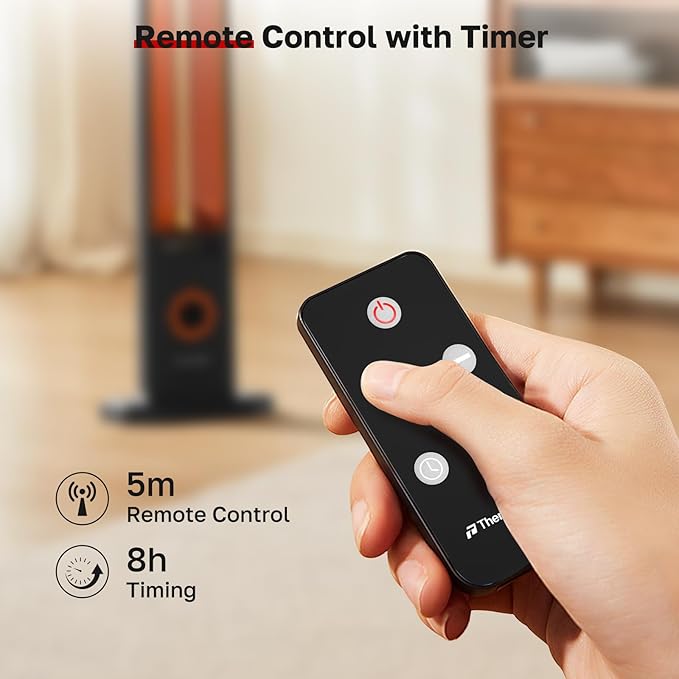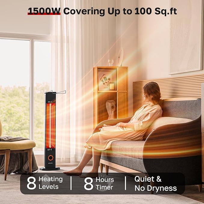 - 8 Heating Levels and 8 Hours Timer - adjust with remote or on the machine, save 20% energy