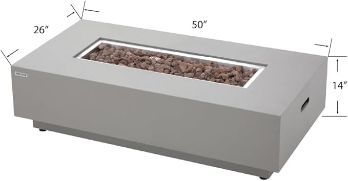- ✓ Premium 50" Smokeless Propane Fire Pit Table – The dimensions of the patio fire pit are 50-in x 26-in W x 14-in H. Large outdoor gas fire pit with powerful 50,000 BTU stainless steel burner delivers exceptional heat for patio gatherings. Rectangular propane fire table for backyard entertainment and outdoor dining.