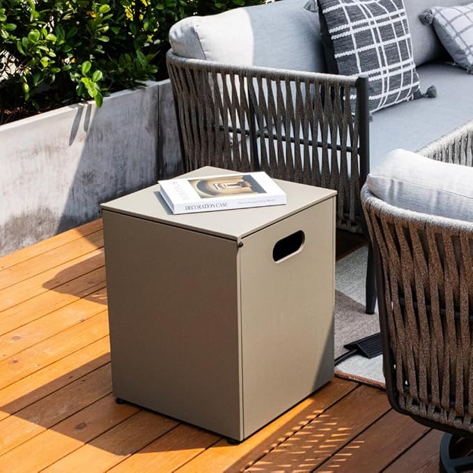 - ✓ CSA Certified Outdoor Fire Pit Set – CSA certified propane fire table meets safety standards. This elegant propane fire pit table set, features 13.2 lbs of lava rocks, canvas cover, propane tank cover, windscreen, burner lid, and a natural gas conversion kit.