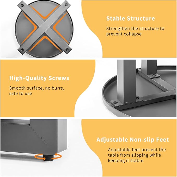 - Height Adjustable: Round Side Table with Adjustable Screws – Features precision-adjustable screws to balance the tabletop and prevent wobbling