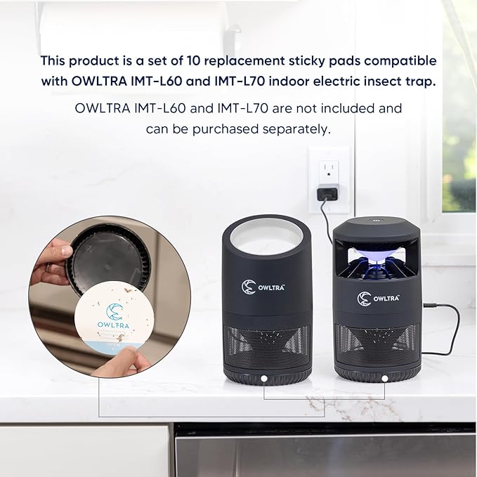 - This product includes 10 replacement sticky pads designed for the OWLTRA IMT-L60 and IMT-L70 Indoor Electric Insect Traps (sold separately). For optimal performance, replace each pad approximately once a week, however, each pad can last to up to 4 weeks.