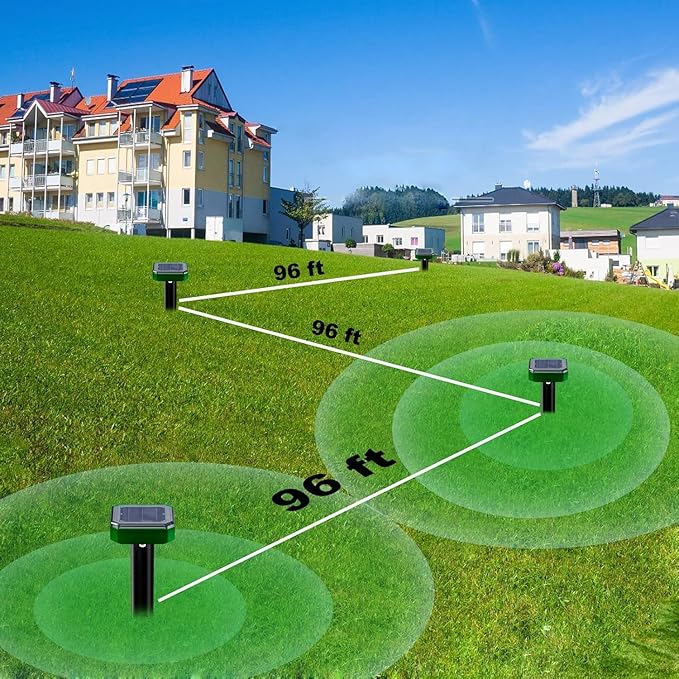 - Solar Powered Ultrasonic Animal Repellent - Due to the small burrowing insectivores are sensitive to concussion and ultrasonic, the solar mole repellent stakes get rid of gophers/moles/snakes by releasing ultrasonic wave, and create concussion 4 seconds each 30 seconds. Averagely, it will keep moles away in 2-3 weeks, for smaller moles, it might only need just a week.
