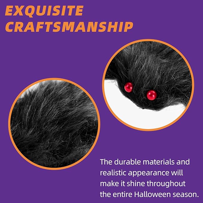 - Eerie and Lifelike Appearance: The giant spider boasts a black fuzzy body, terrifying red eyes,it creates a spine-chilling scene. As popular Halloween Decorations Outdoor and Indoor, they quickly become the focus, drawing everyone's eyes at any event.
