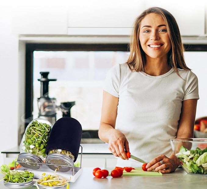 - MAKE SPROUT EASIER - Our sprouting stainless steel stand provides optimal drainage and airflow angles for jars, and keeps seeds&sprouts from rotting. Make your seeds sprout successfully every time, even a novice can sprout easily! Also, the shade sleeves will allow you to grow longer, straighter, and sweeter sprouts.