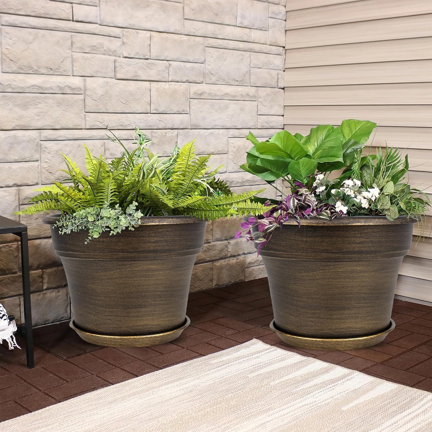 - 【TRADITIONAL DESIGN】Plastic planters for indoor plants with trays are designed in dark gold colors & a classic round look, which allow this pot to fit into any indoor & outdoor setting. With these golded flower pots, it could adds fresh, decorative flair to your home. Decorate your windowsill, desktop, shelf, bedroom, living room, kitchen, garden, office with our 8 inch plastic plant pot.