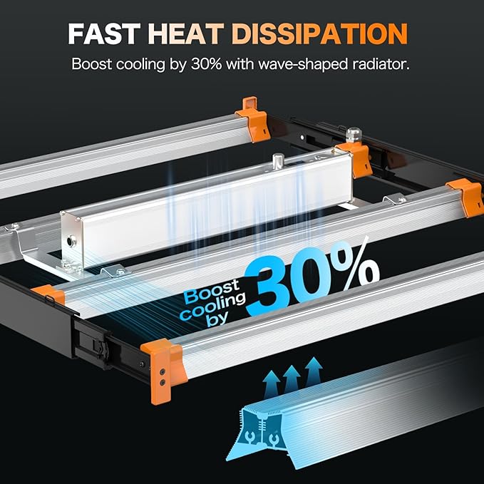 - 【High-Efficiency Full Spectrum Science】 Engineered with diodes (3000K + 5000K + 660nm + 730nm), our full spectrum LED grow light mimics natural sunlight while dramatically boosting photosynthesis. The 660nm red accelerates flowering/fruiting, 730nm far-red enhances photoperiod response, and dual whites ensure vigorous vegetative growth. With 2.80 µmol/J PPF efficacy, every watt delivers potent, energy-saving PAR for maximum yield.