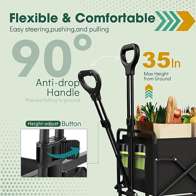 - 【Widely Use】: It is versatile and perfect for various activities such as outdoor excursions, groceries shopping, sporting events, beach travel, family picnics&camping, gardening and so on. The wagons carts foldable is ideal choice for families and outdoor enthusiasts
