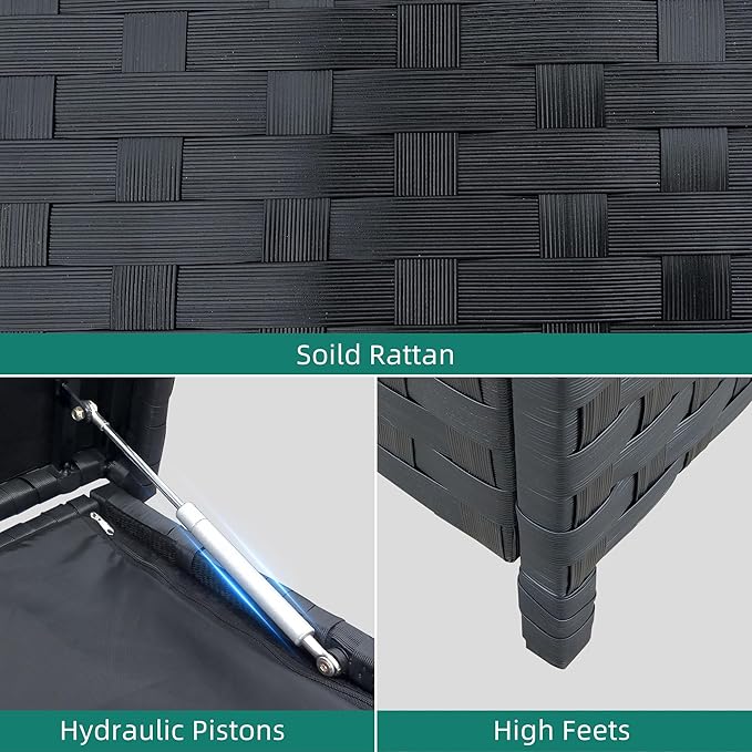 - Heavy-Duty Constructions: Built with a sturdy rattan exterior and reinforced iron frame, this oversized deck box is designed to withstand sun exposure and rust for long-lasting durability in any outdoor setting