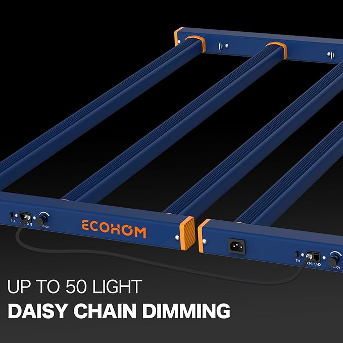 - 【Dimmable & Daisy Chain Design】 Easy dimming, ranging from 0-100% dimming to meet the needs of Plant Growth. giving you full control over the intensity of light for different stages of plant growth. the daisy chain function supports growers to connect up to 25 grow lights to control them dimming at the same time. no need to buy controllers, just use the daisy chain to link all the lights, then dimmable one light , all lights follow. Unfold to use, flexibility for growers in any setting.