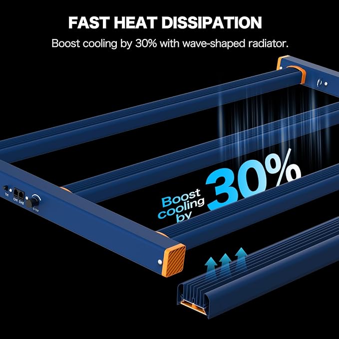 - 【Efficient Heat Dissipation Design】 The grow light design and aluminum heat sink on the back facilitate air circulation and rapid heat dissipation. Reduce ambient heat in the growing space. The foldable design of our grow light no need to assemble. Save your time and space during installation, storage, transportation.