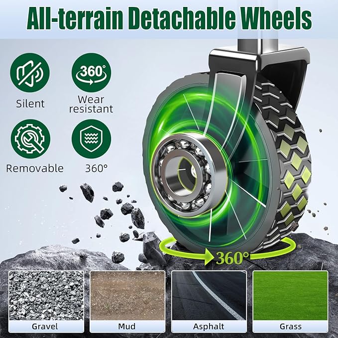 - 【Removable All Terrain Wheels】: This grocery cart on wheels is equipped with four detachable all-terrain wheels, including two front wheels that rotate 360° to easily move across different terrains. The collapsible wagon with wheels is ideal for transporting groceries, shopping, gardening, camping, outdoor sports, traveling.