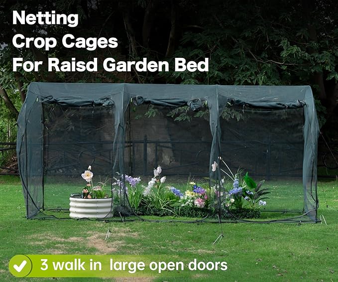 - Spacious Crop Cages- Our ultra long tunnel crop cage measures 12.3 feet in length and 4.1 feet in width, with height options of 4.1 feet or 6 feet. the weight is around 16 pounds,easy to carry and portable,designed to cover large raised beds