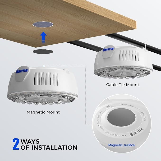 - Full Spectrum with CRI 98: The Barrina Puck grow light offers full spectrum efficiency with a Color Rendering Index (CRI) of 98, providing the ideal light wavelengths for photosynthesis at all plant growth stages. From seedlings to flowering, this grow light ensures your indoor plants thrive