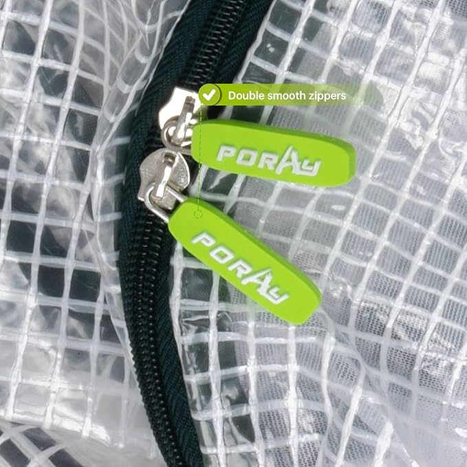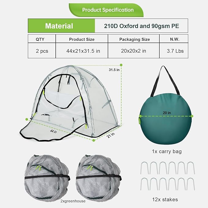 - HUMANIZED DESIGN -The pop-up greenhouse is very easy set up featuring humanized design with 4 large zip-able front/back roll-up doors. It includes 2 mesh windows with PE/mesh fabric for better ventilation, 2 fiberglass poles and triangle imitation roof design preventing rain/snow buildup