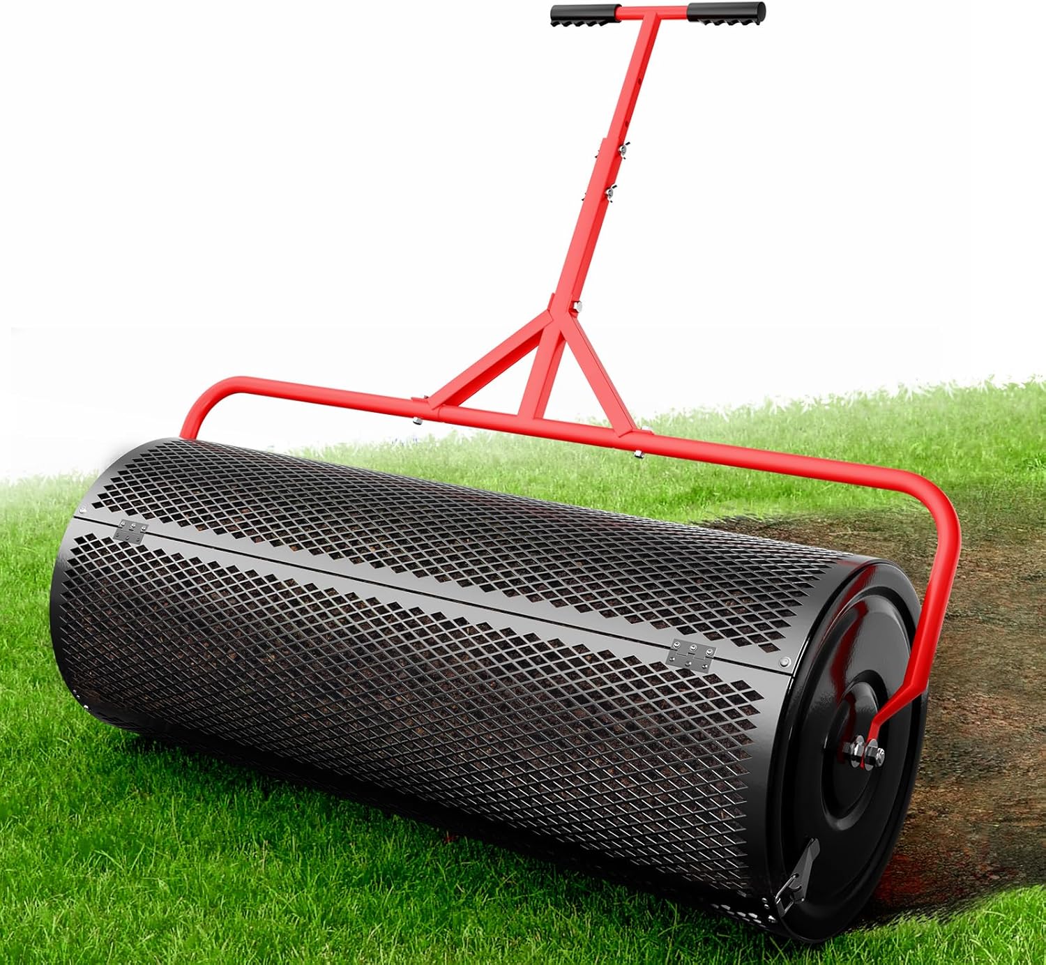Compost Peat Moss Spreader for Lawn, 36 Inch Compost Roller Spreader with Adjustable T-Shaped Handle, Upgraded Side Clasps, Durable Lightweight Metal Roller, Lawn Garden Yard Care