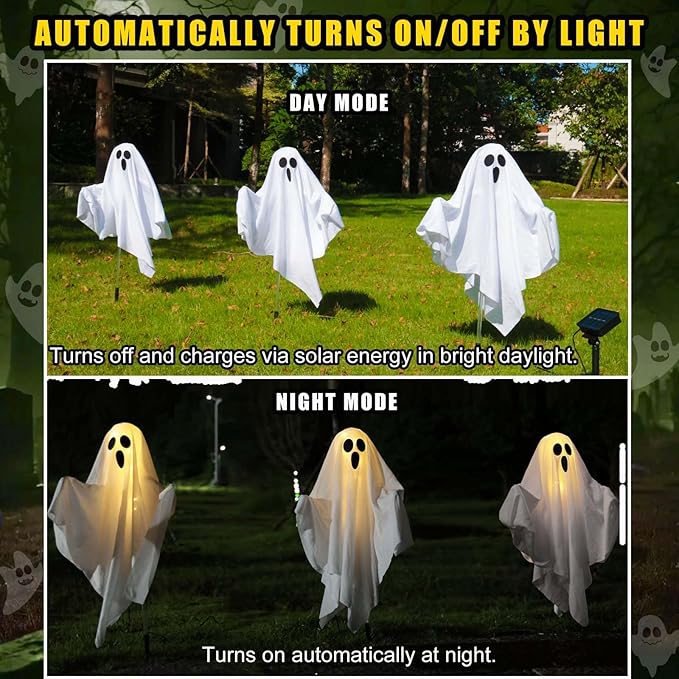 - Magical Floating Illusion with Clear Stakes: They feature invisible clear stakes that make these spectral figures appear to mysteriously float and dance above your lawn or garden. This eye-catching optical illusion will be the eerie centerpiece of your Halloween display, amazing all your neighbors and trick-or-treaters.