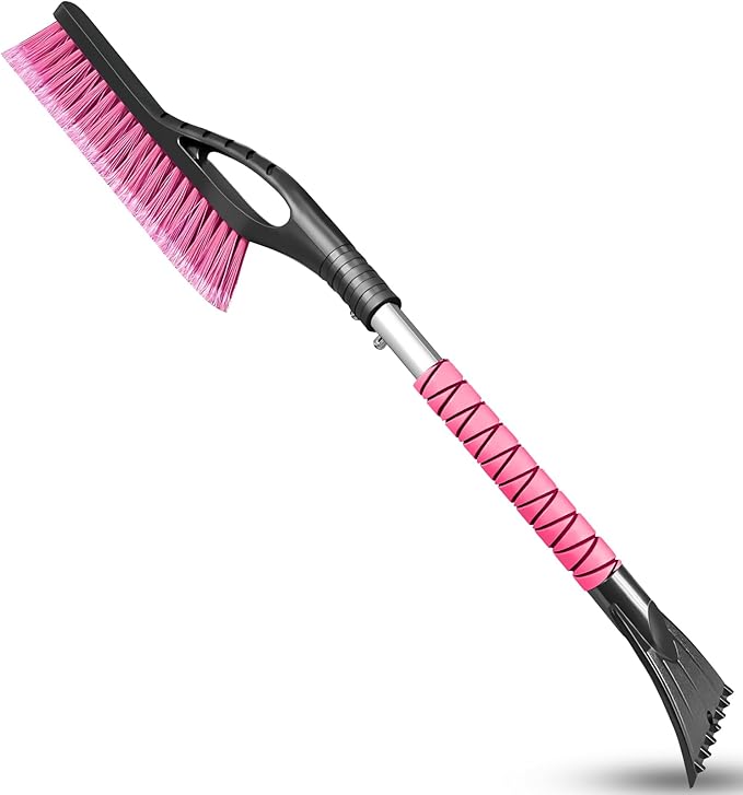 HEEYA 27 Inch Ice Scraper and Brush for Car, Snow Brush and Ice Scraper with Foam Grip, Detachable Snow Scraper for SUV Truck Jeep Vehicle Auto Windshield Window - Pink