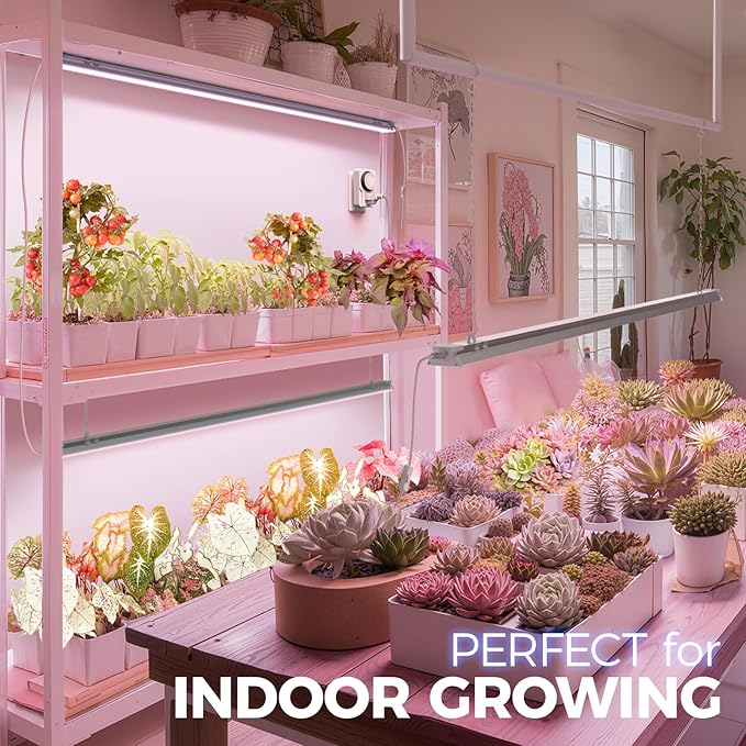 - Red & Blue Full Spectrum: This 4FT grow lights for indoor plants full spectrum 620-680nm red light to accelerate germination, flowering, and fruiting, plus 430-460nm blue light to boost photosynthesis for stronger stems and leaves. With 5200 lumens and red blue synergy, it delivers ample indoor lighting to maximize plant growth and yield, and is ideal for succulents and other root tuber plants