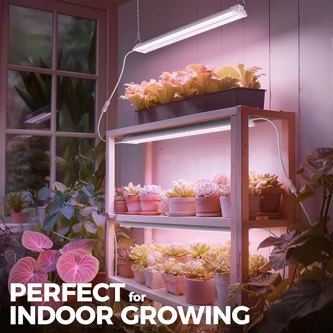 - Red & Blue Full Spectrum: This 2FT grow lights for indoor plants features 620-680nm red light to accelerate germination, flowering, and fruiting, plus 430-460nm blue light to boost photosynthesis for stronger stems and leaves. With 2900 lumens and red blue synergy, it delivers ample indoor lighting to maximize plant growth and yield, and is ideal for succulents and other root tuber plants
