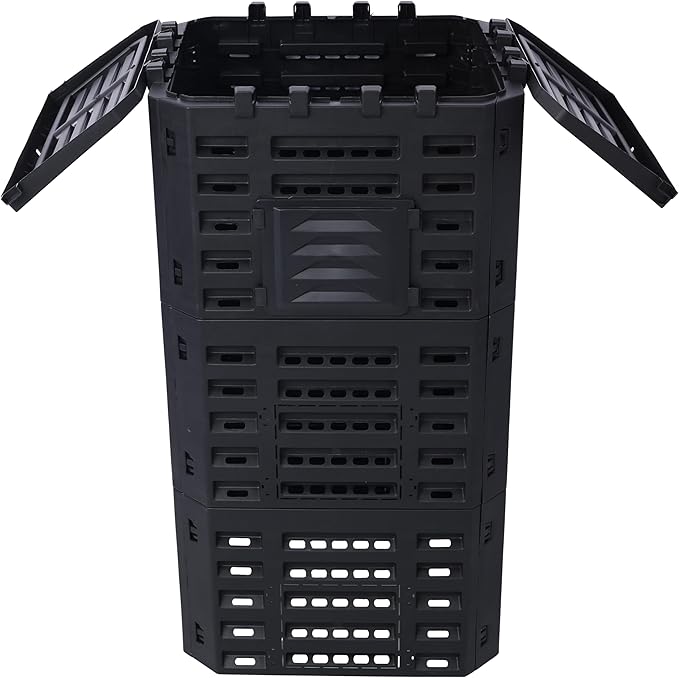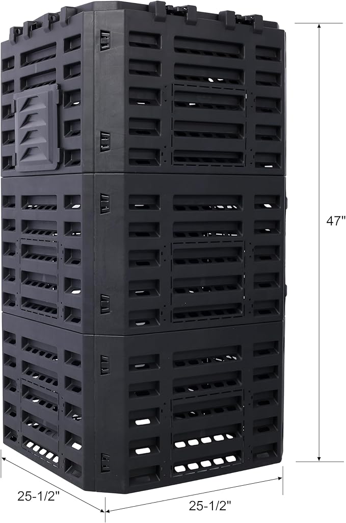 - Create Fertile Soil Effortlessly: With our lightweight outdoor compost box, turn kitchen waste into fertile soil effortlessly. This Black Garden Composter Bin is your perfect partner in sustainable gardening, helping you enjoying the fruits of your labor.