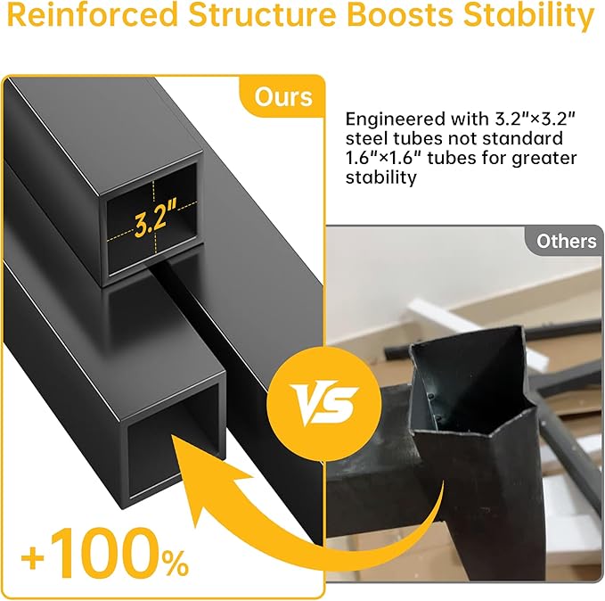 - Sturdy Structure: The frame uses 6 thickened 3.2"x3.2" high-strength steel tubes, this design ensures the carport stays robust and reliable in extreme weather